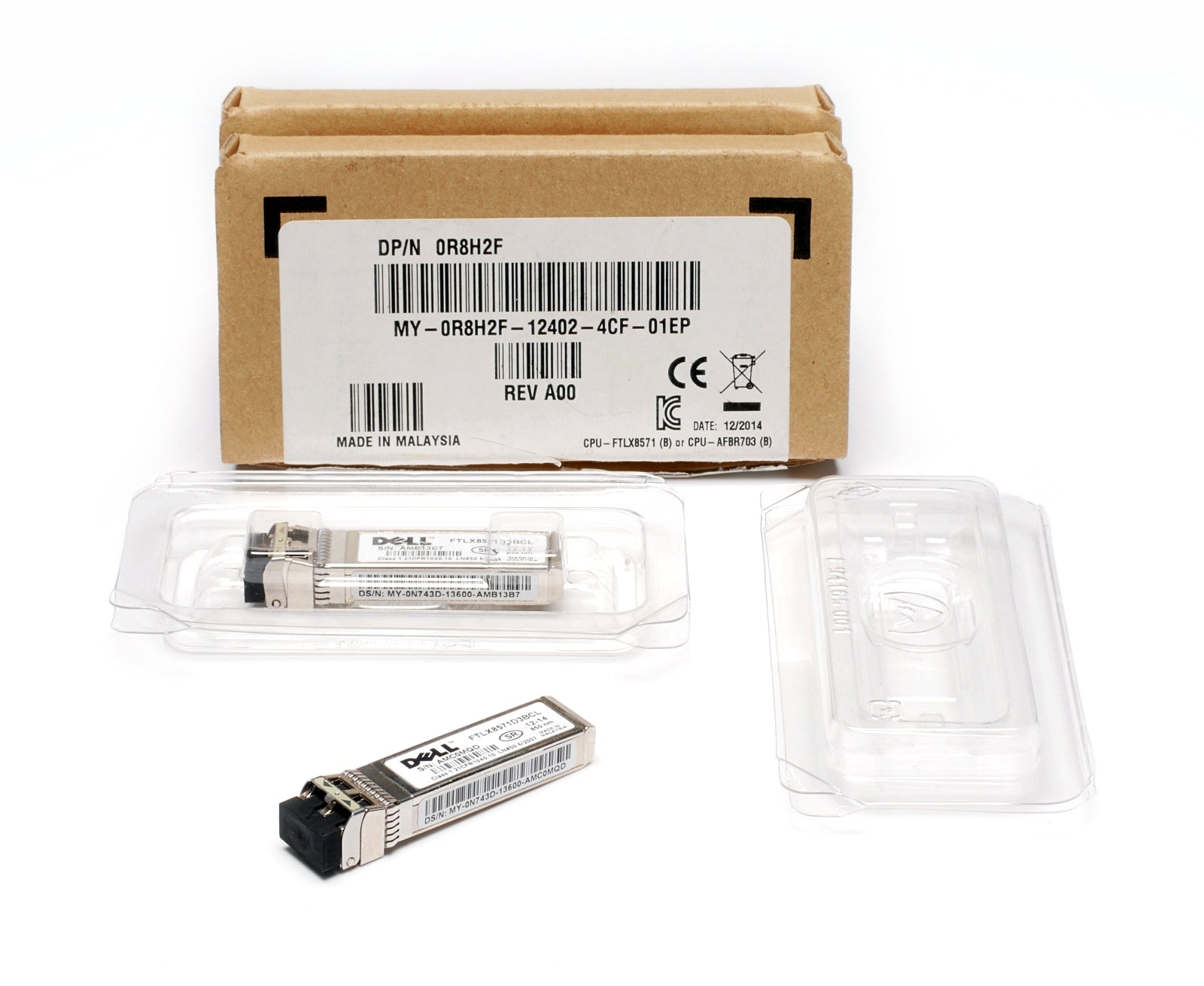 2x Dell 10Gb/s 10GBase-SR Multi-Mode Fibre 850nm 300m Duplex LC SFP+ Transceiver 0R8H2F
