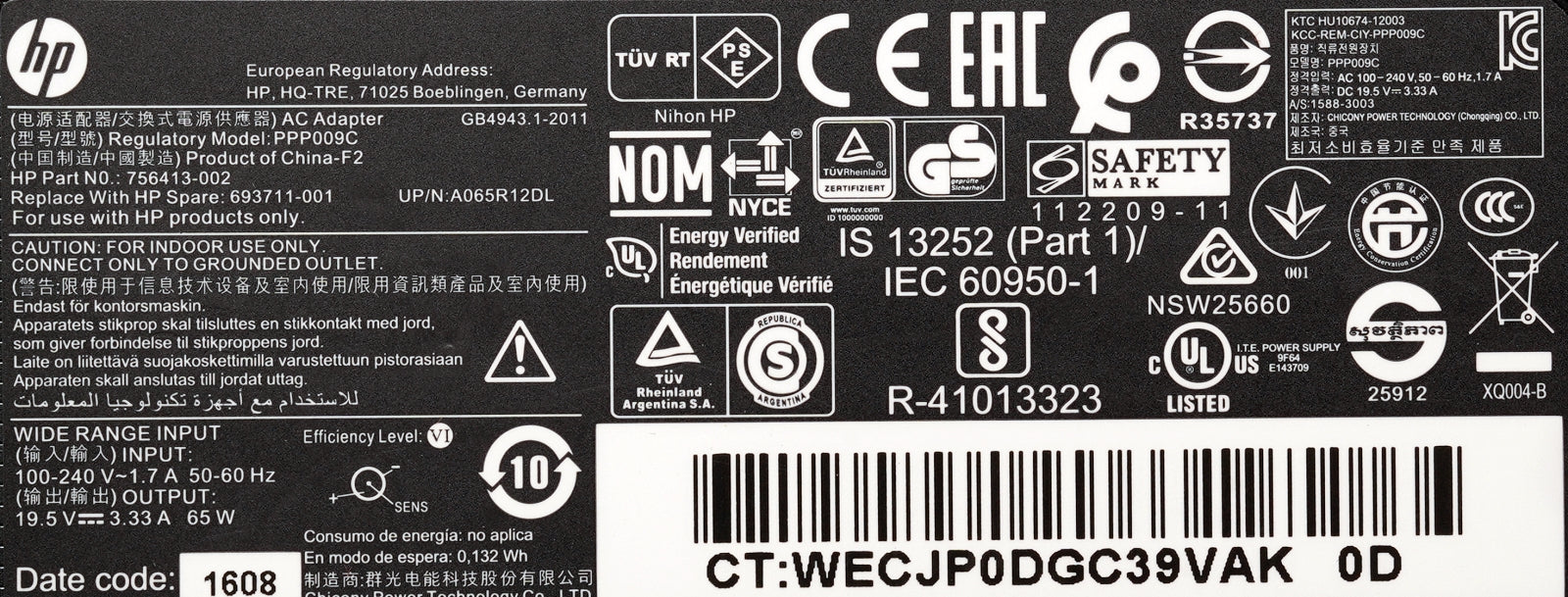 Genuine HP 65W AC Adapter PPP009C 756413-002 693711-001 19.5V 3.33A