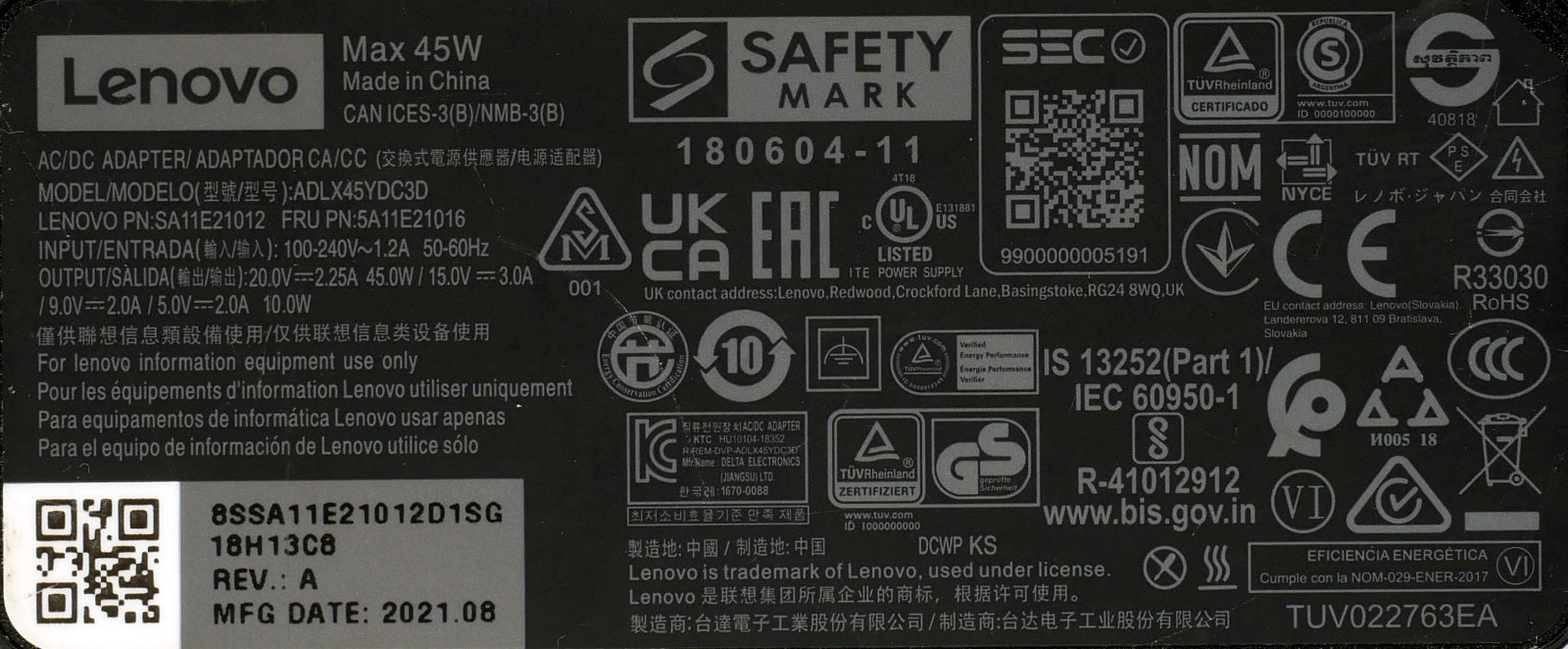 Genuine Lenovo 45W USB-C 20V 2.25A AC Adapter ADLX45YDC3D 5A11E21016 SA11E21012