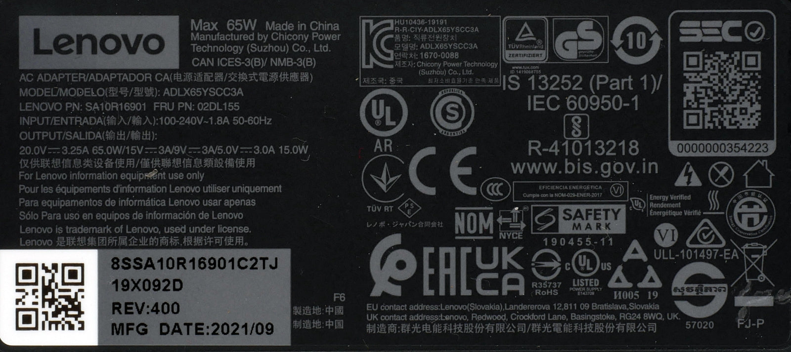 Genuine Lenovo 65W USB-C AC Adapter SA10R16901 ADLX65YSCC3A 02DL155
