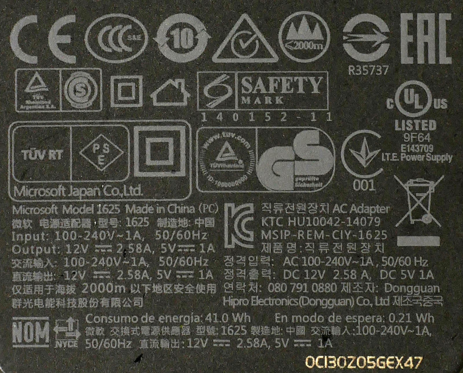 Genuine Microsoft Surface Pro Model 1625 Charger AC Adapter includes power cable