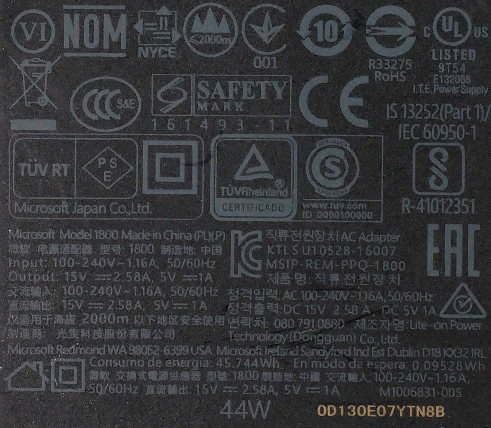 Genuine Microsoft Surface Pro Model 1800 Charger AC Adapter includes power cable