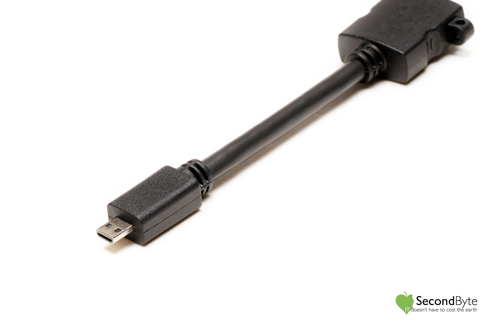Convert the micro-HDMI port on a smartphone to an HDMI port with the Micro-HDMI to HDMI Adapter Cable from Liberty AV Solutions. The adapter cable features a micro-HDMI Type-D male connector on one end, and a full-sized HDMI female port on the other, enabling you to connect an optional HDMI cable. The adapter cable allows you to output what's stored on a micro-HDMI equipped device, so you can enjoy the content on a larger display. The adapter cable extends the reach of your HDMI cable by up to 8" for reaching an HDMI-capable home theatre system or projector. Additionally, it comes outfitted with an eyelet-molded design that helps the adapter remain attached.